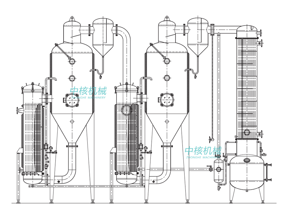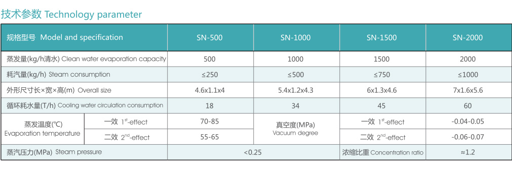 1、采用外加熱自然循環(huán)與真空蒸發(fā)相結合的方式,蒸發(fā)速度快,濃縮比重可達1.2。